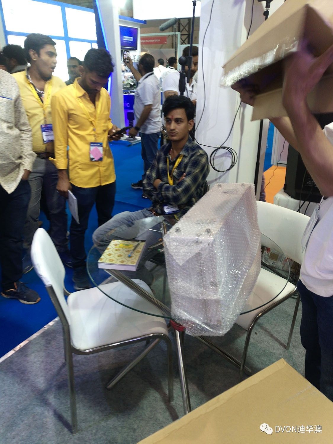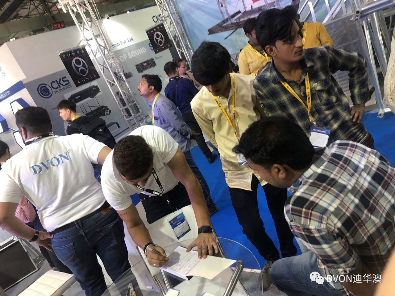 觀眾圍在8套裝的專業(yè)機柜前聆聽DVON工作人員的講解